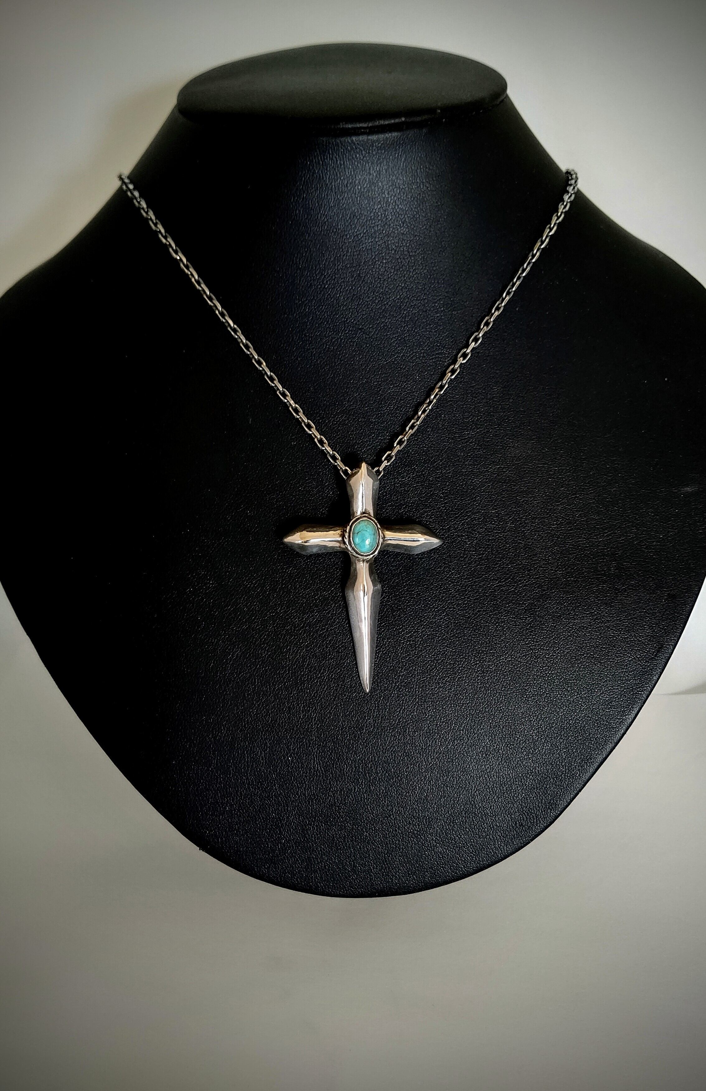 NO.8ターコイズを真ん中に飾ったクロスネックレス。