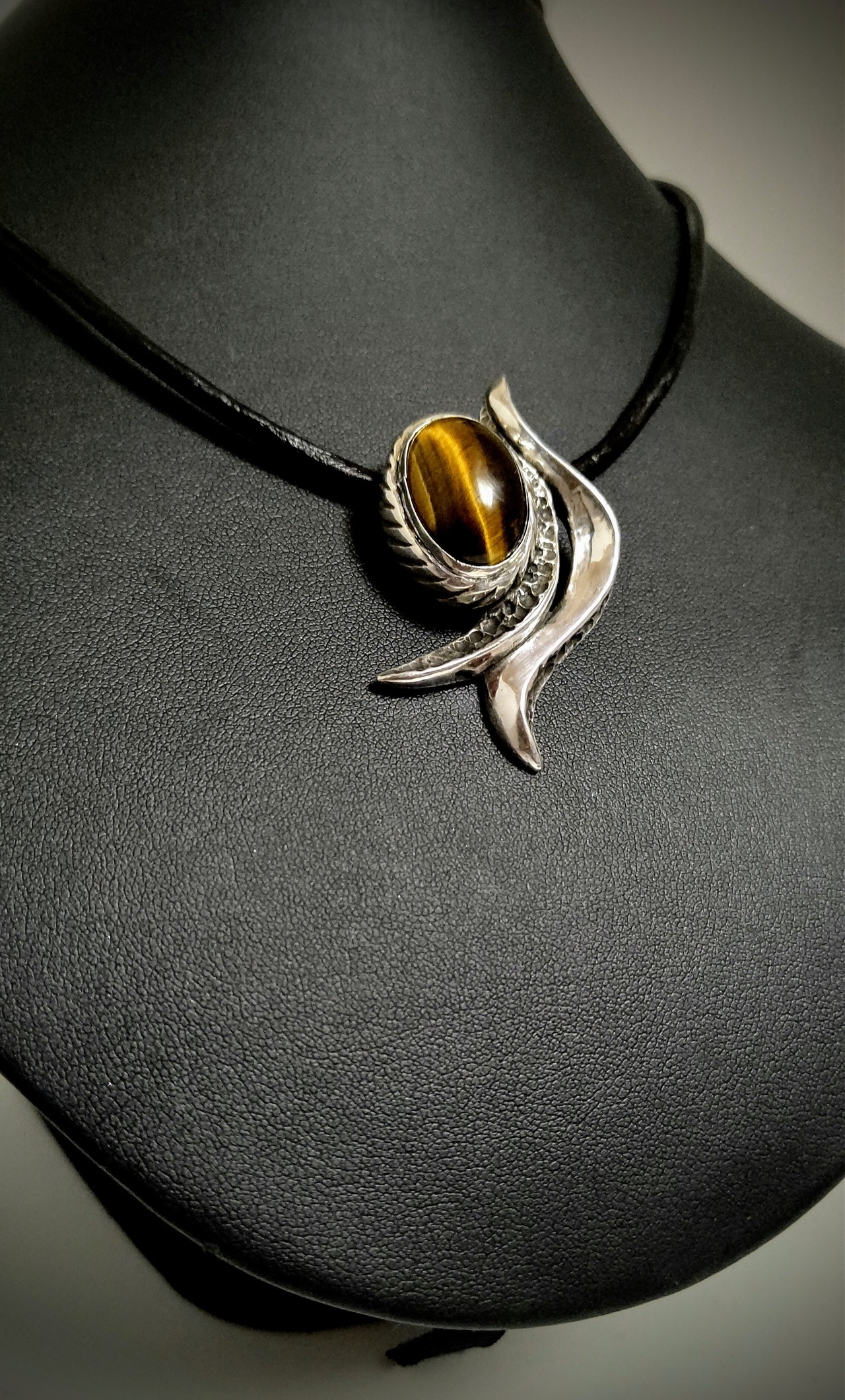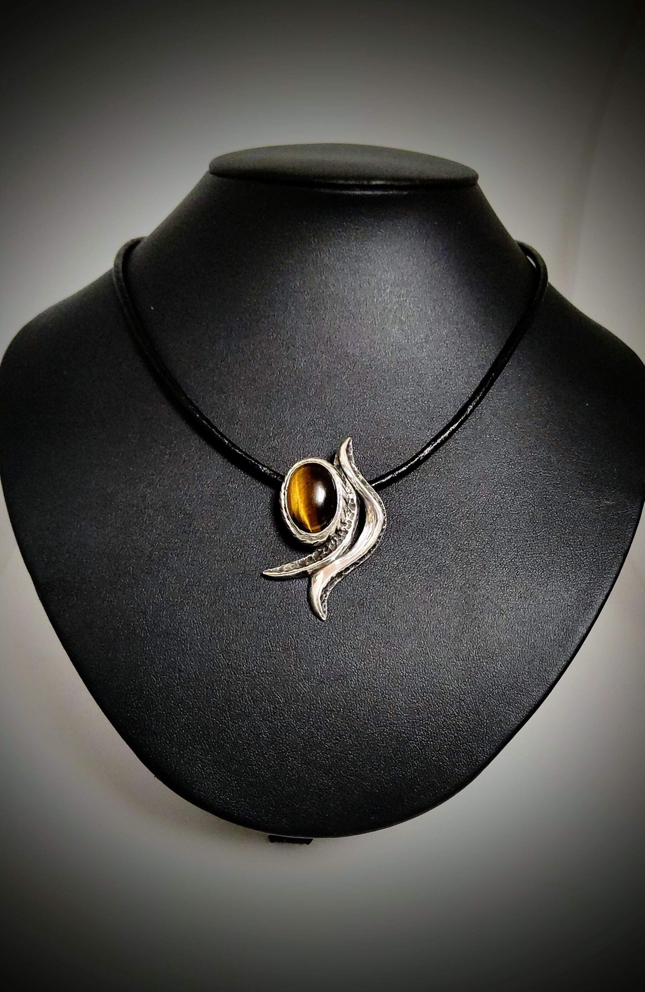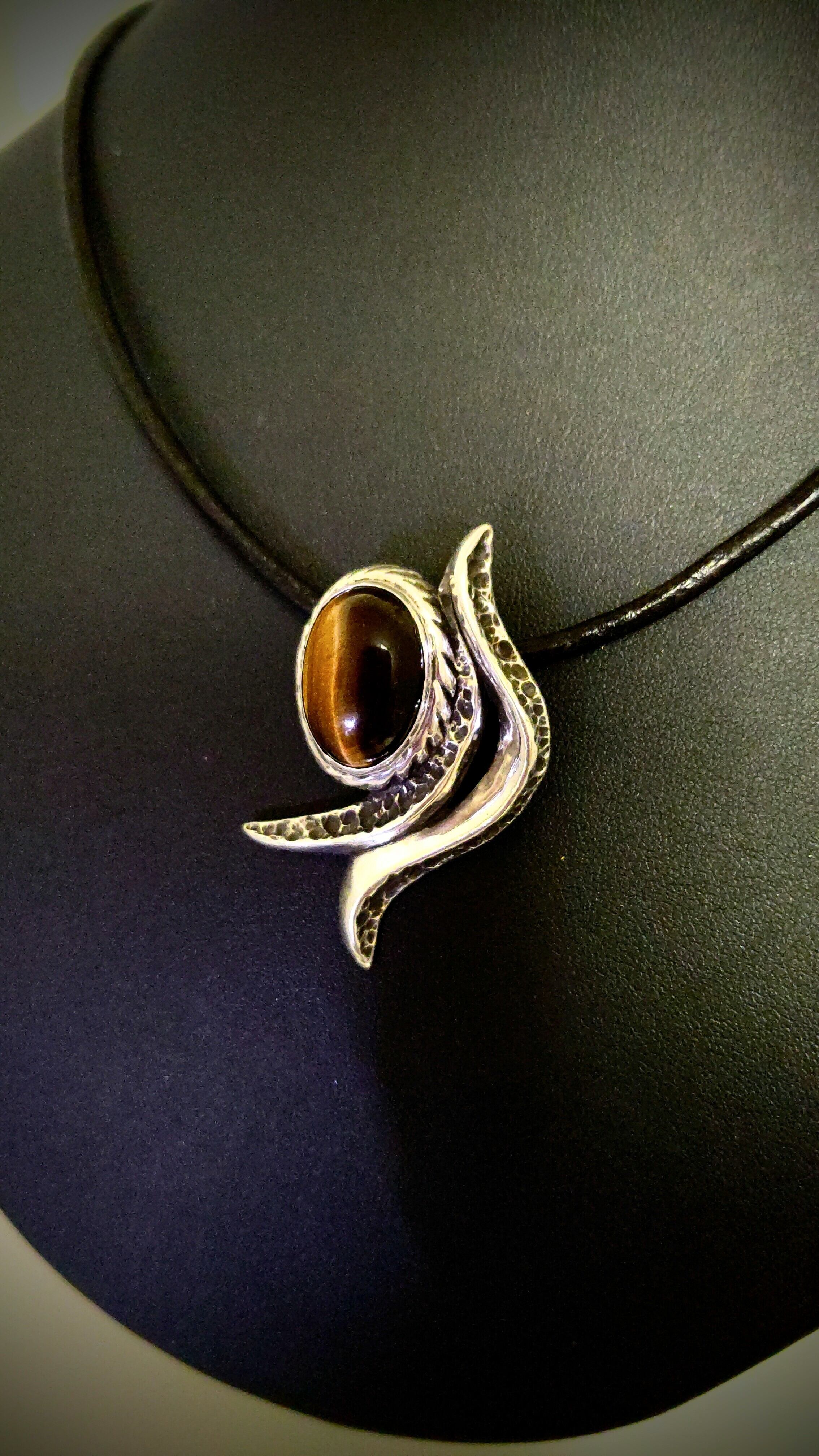 20㎜×15㎜の大きなタイガーアイを使い、8分音符をイメージしてデザインしたネックレスです。