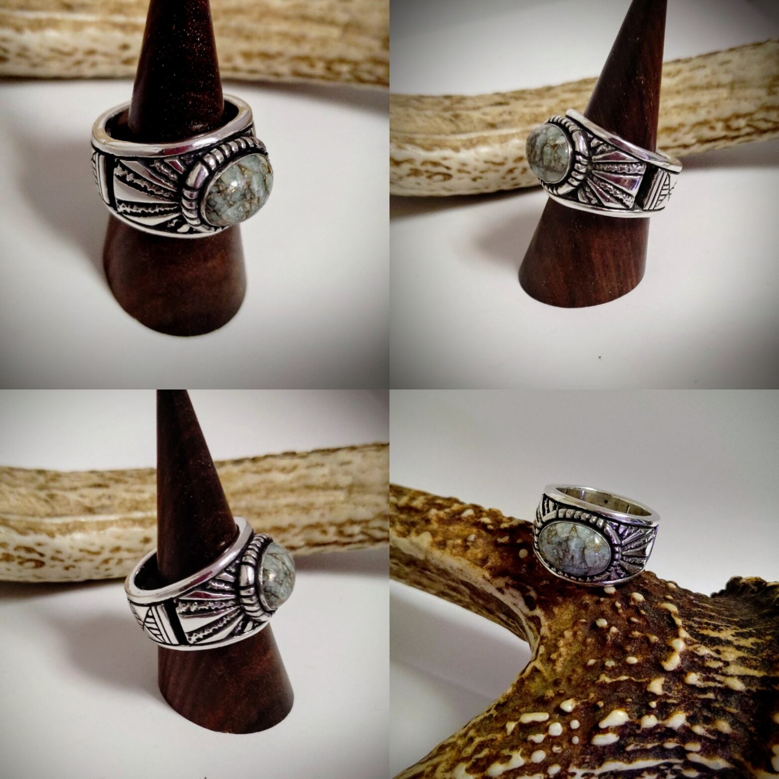 存在感たっぷりですが、コッパーアマゾナイトの色合いが威圧感が無く不思議と馴染みます。