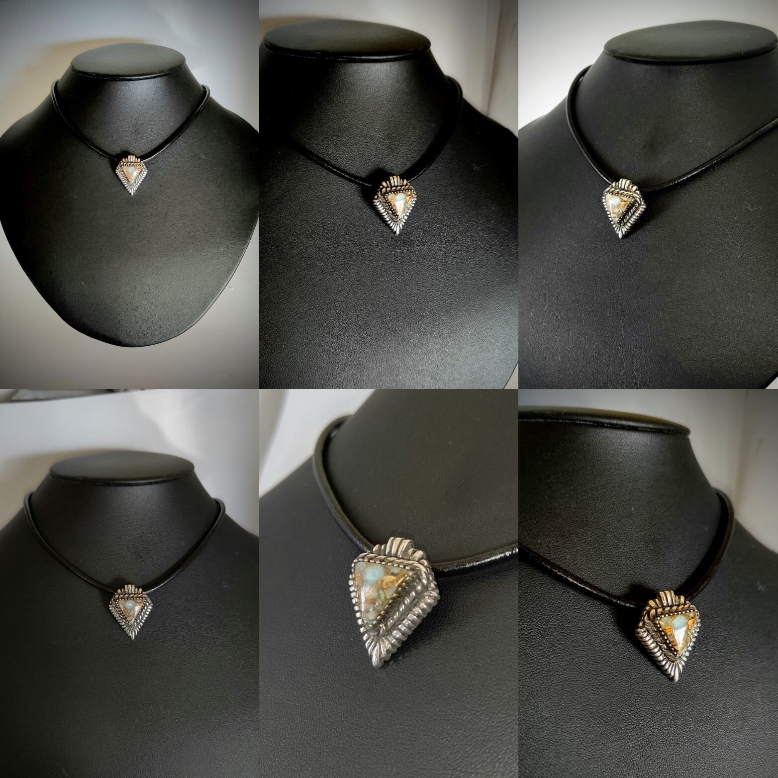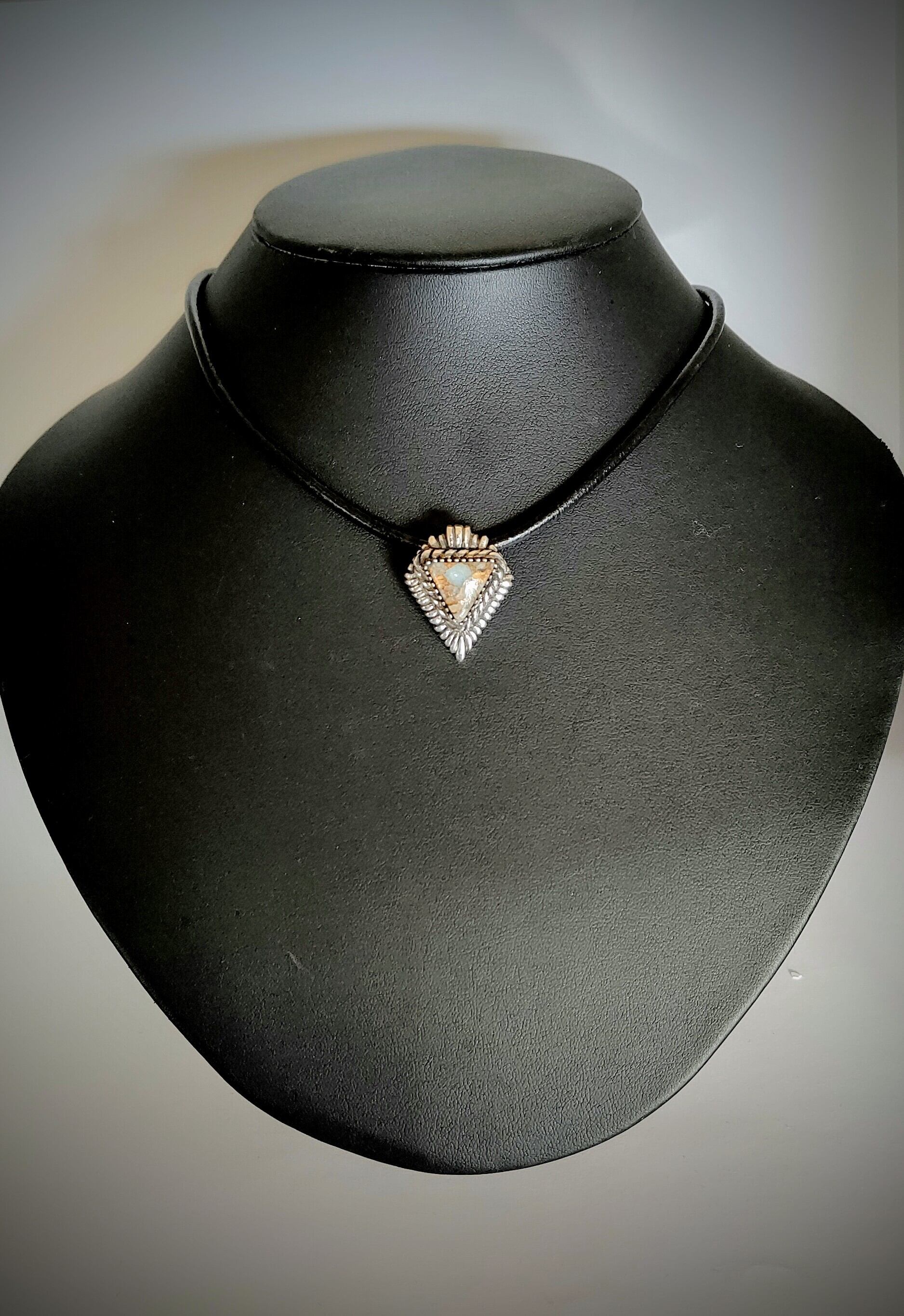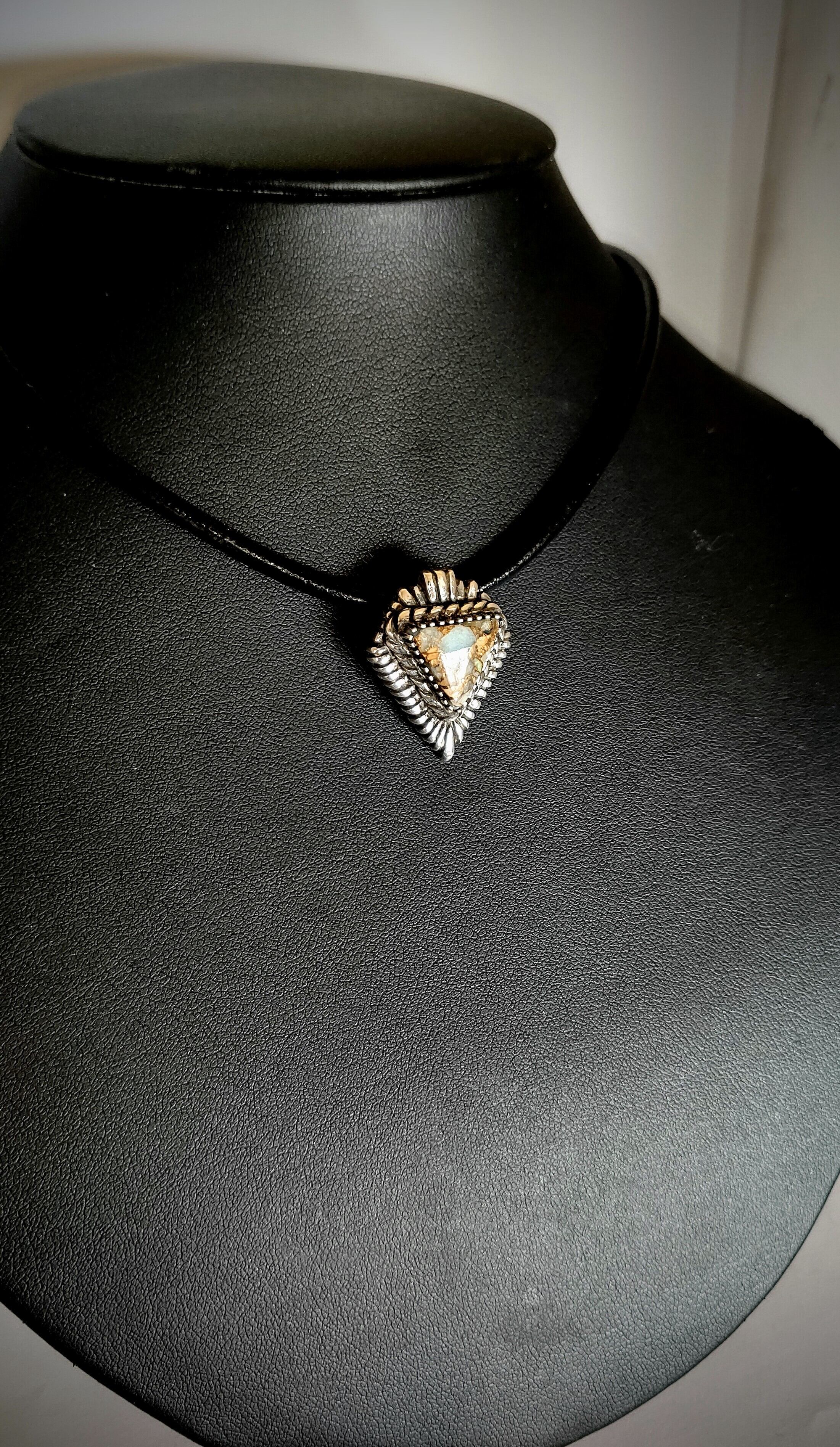 写真のように太めの革紐でチョーカーのように着けたり、太めのチェーンでお使い頂くとまた違う雰囲気をお楽しみ頂けます。