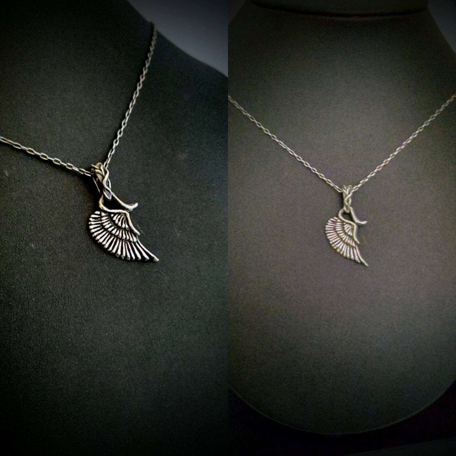 不動の人気のフェザーネックレス。全長35.4㎜と気軽にお使い頂けるさいずです。