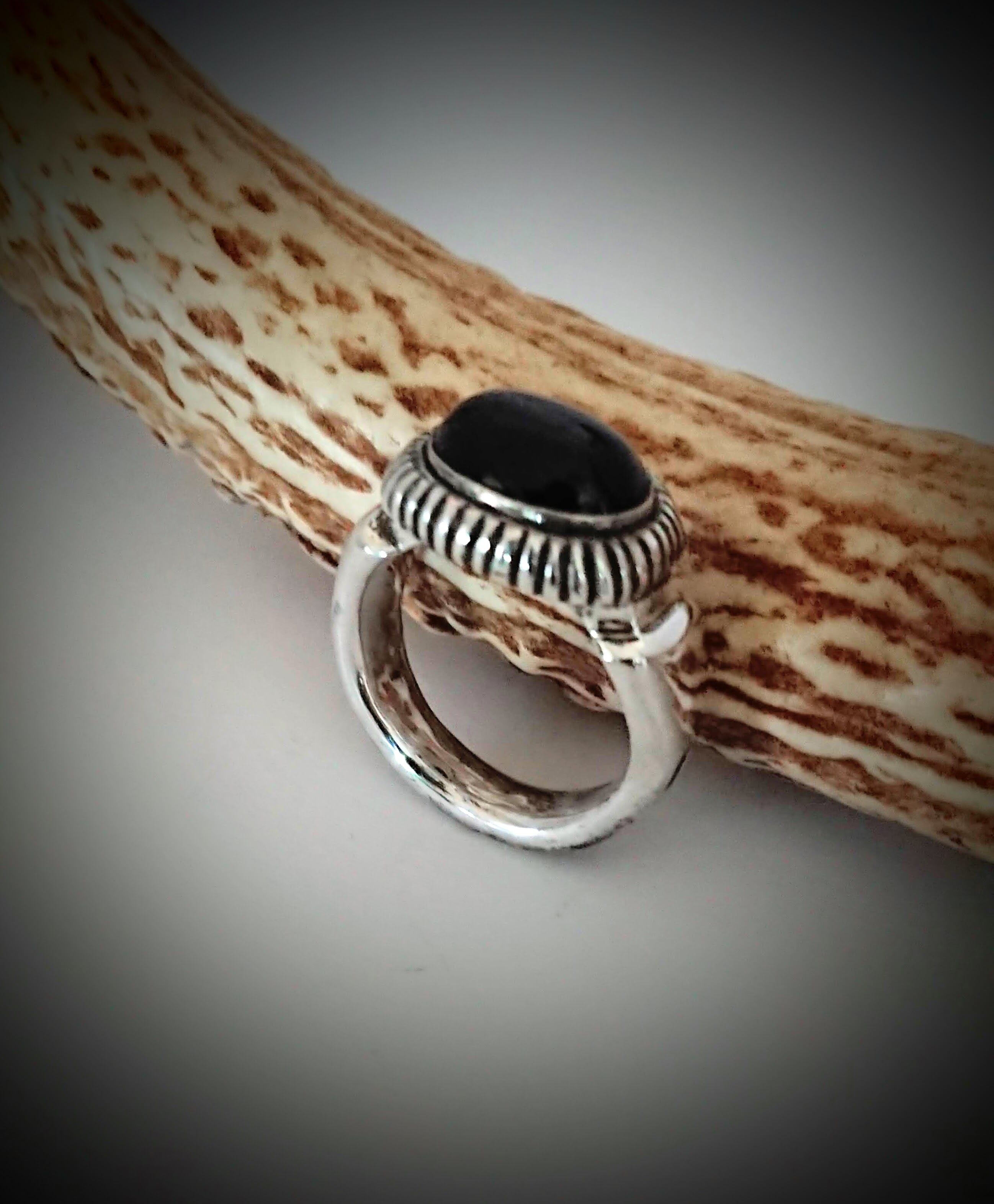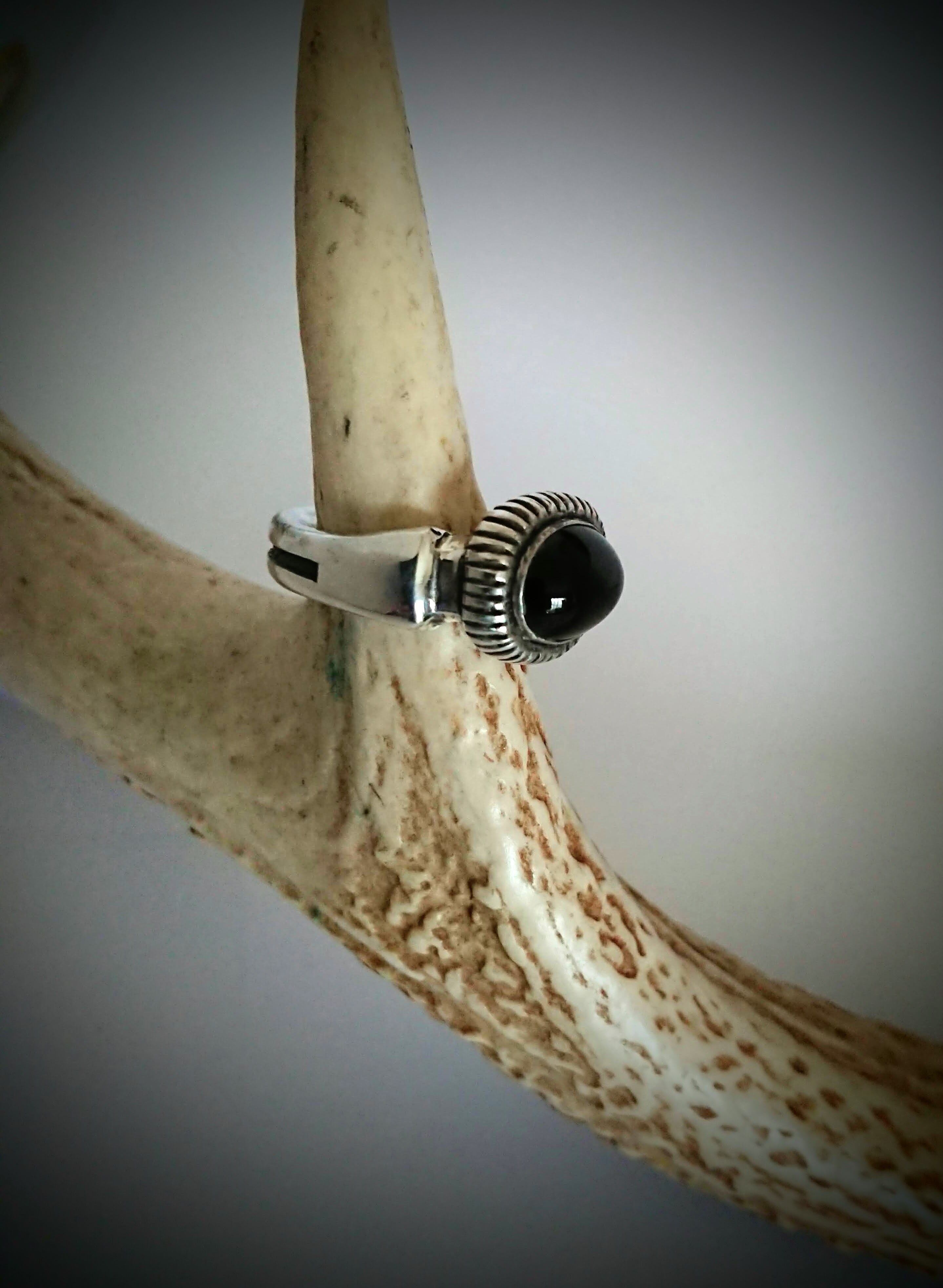天然石オニキスを使いました。大人カッコいいクールなリングです。