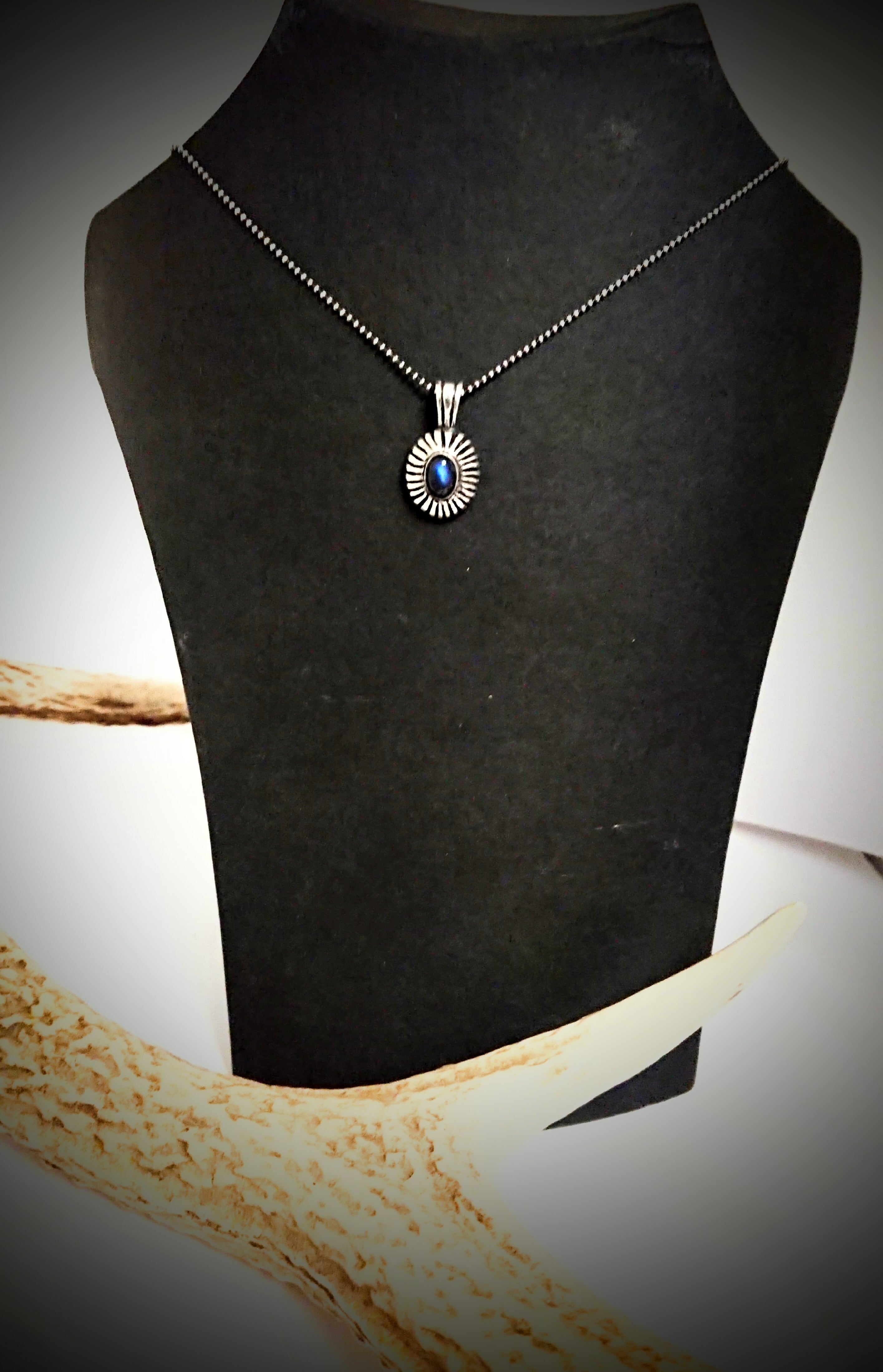 真夜中のような深い藍色が魅力的なブラックラブラドライトを使いました。