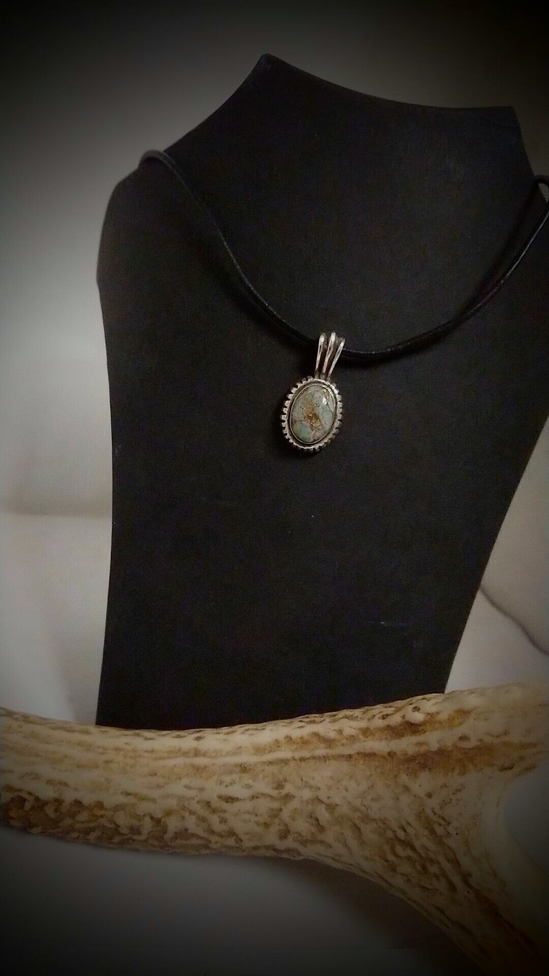 水色の中に金色がアクセントのように入った魅力的な天然石、コッパーアマゾナイトを使い