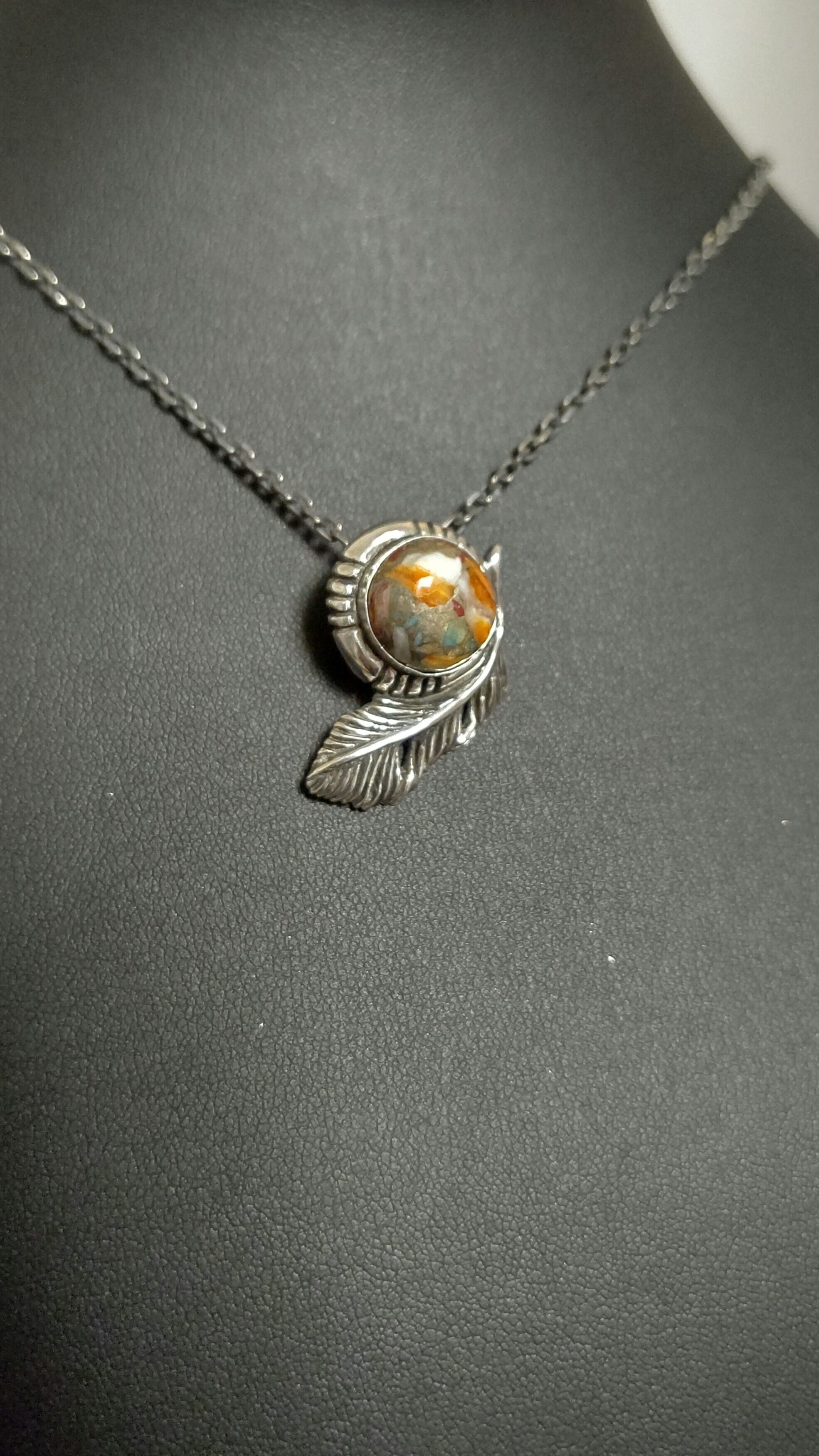 まん丸の天然石を使いハード過ぎないフェザーのネックレスです。