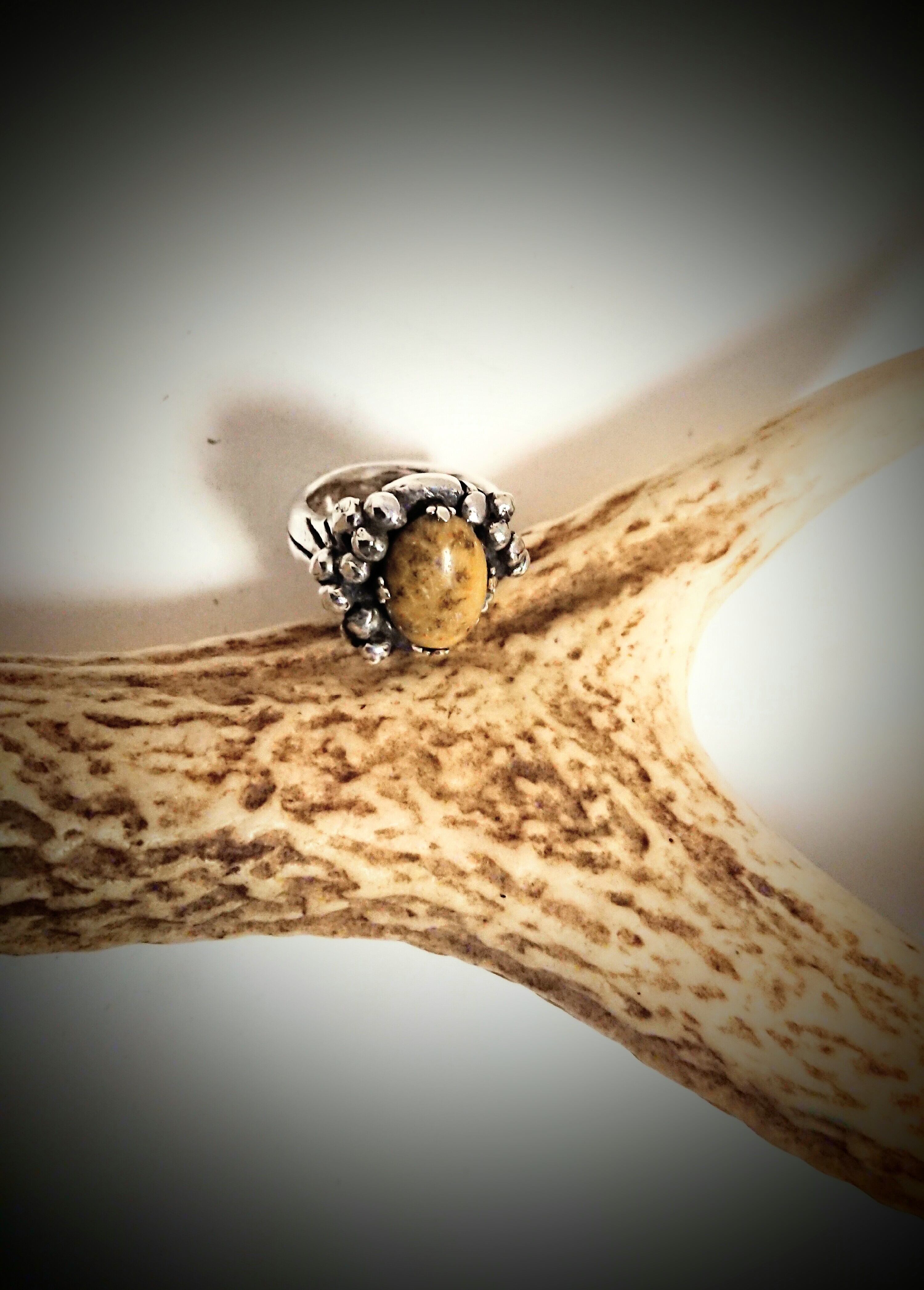 肌馴染みの良い色合いのクレイジーアゲートを使いランダムにつぶつぶの玉を飾りました。