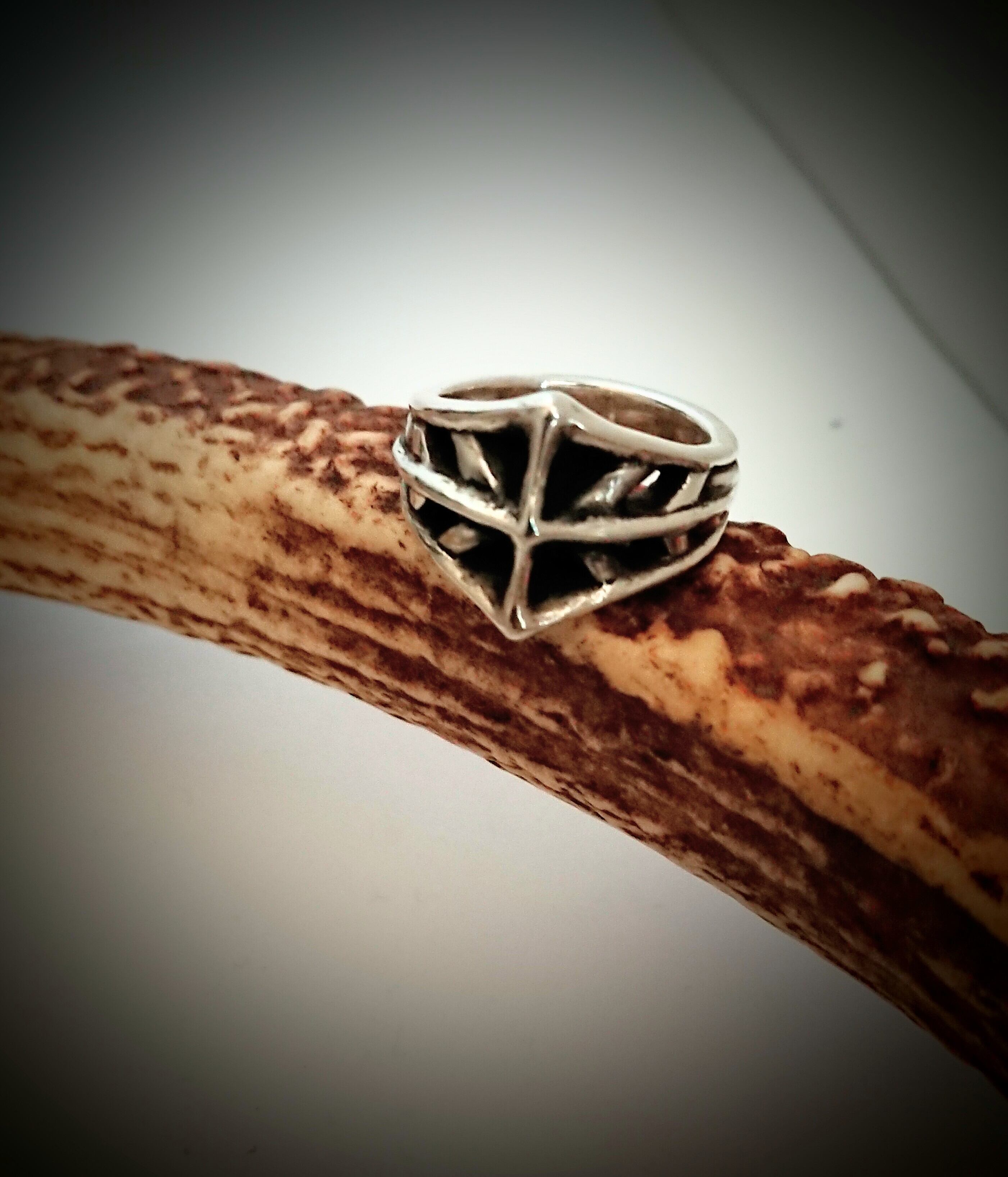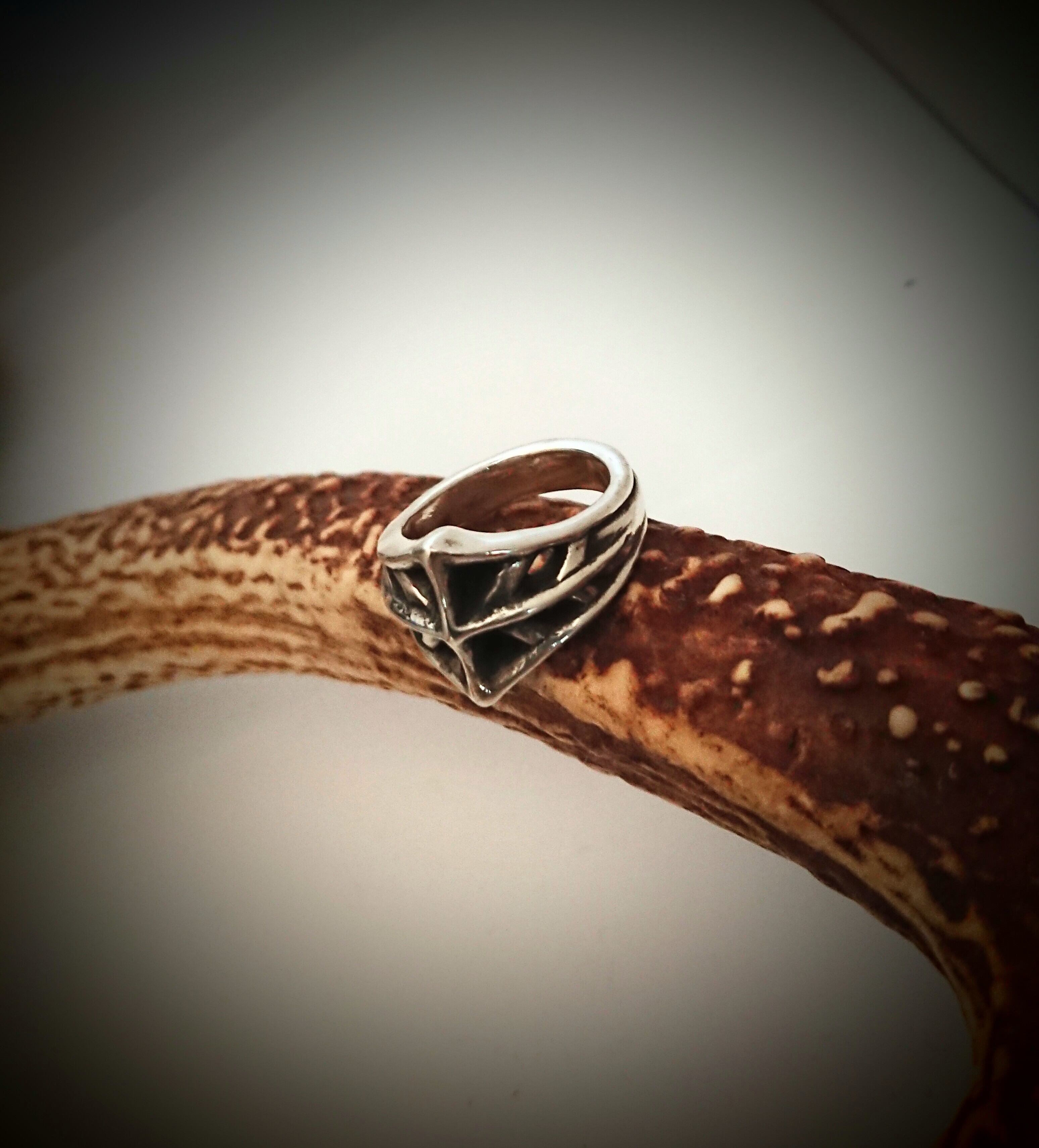 鉄仮面のようなフォルムのリング。