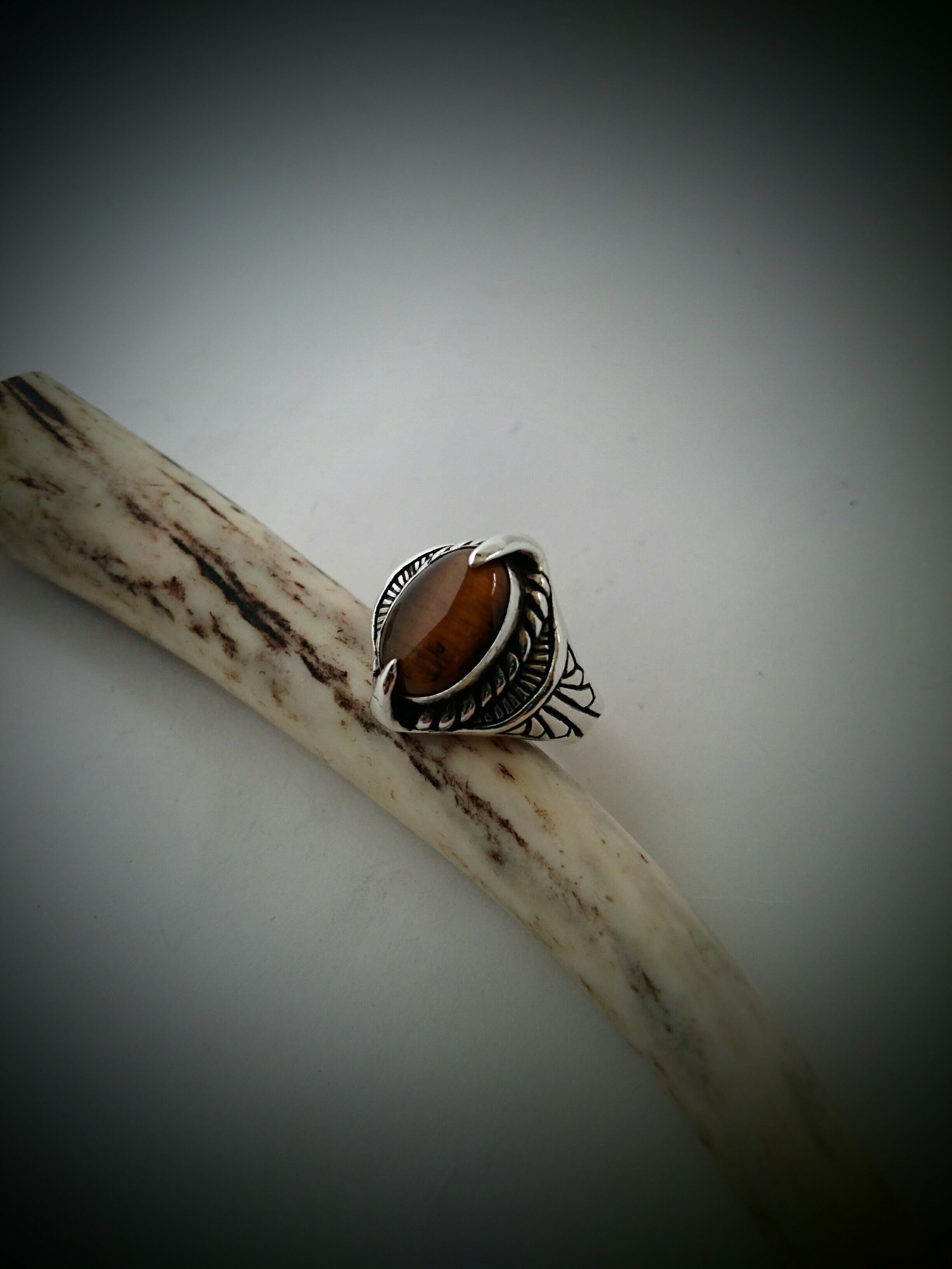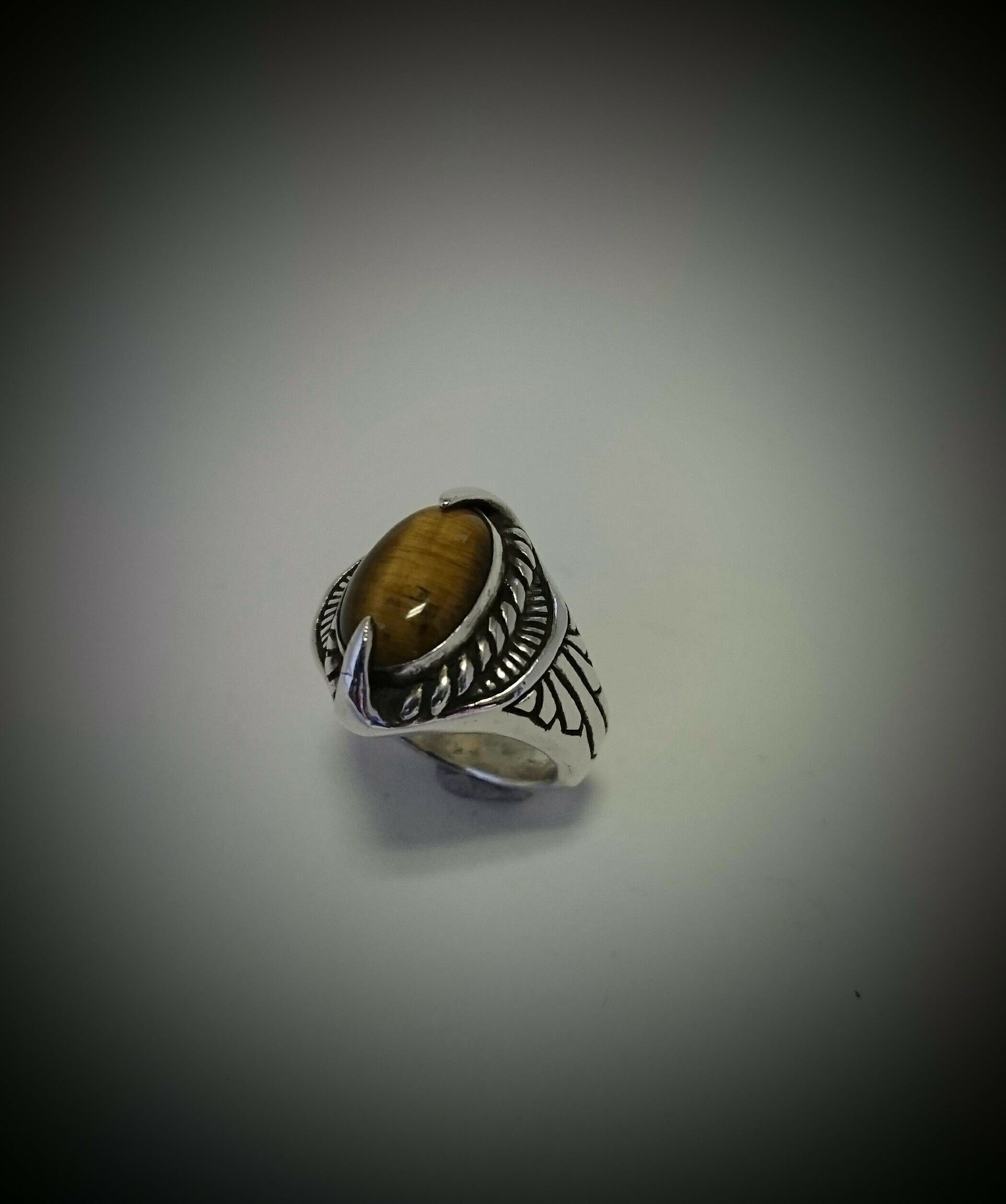 天然石イエロータイガーアイを使い、手彫りで模様を彫り、
