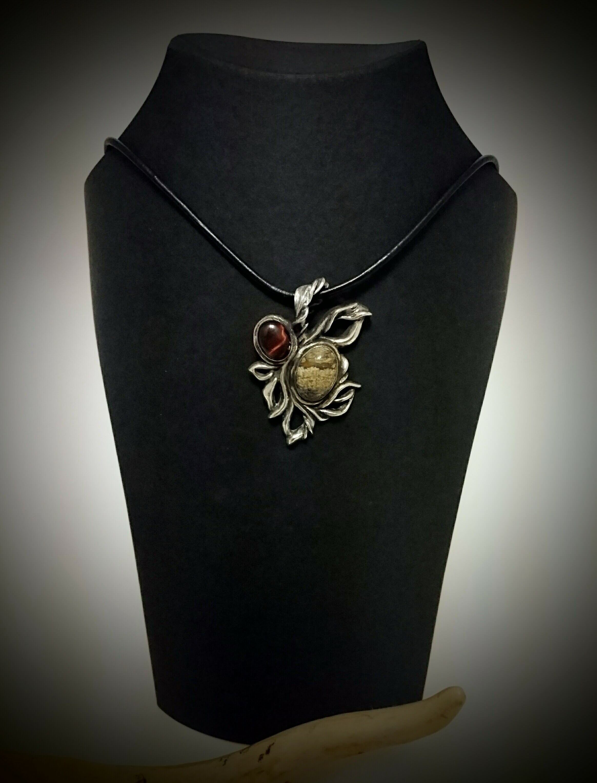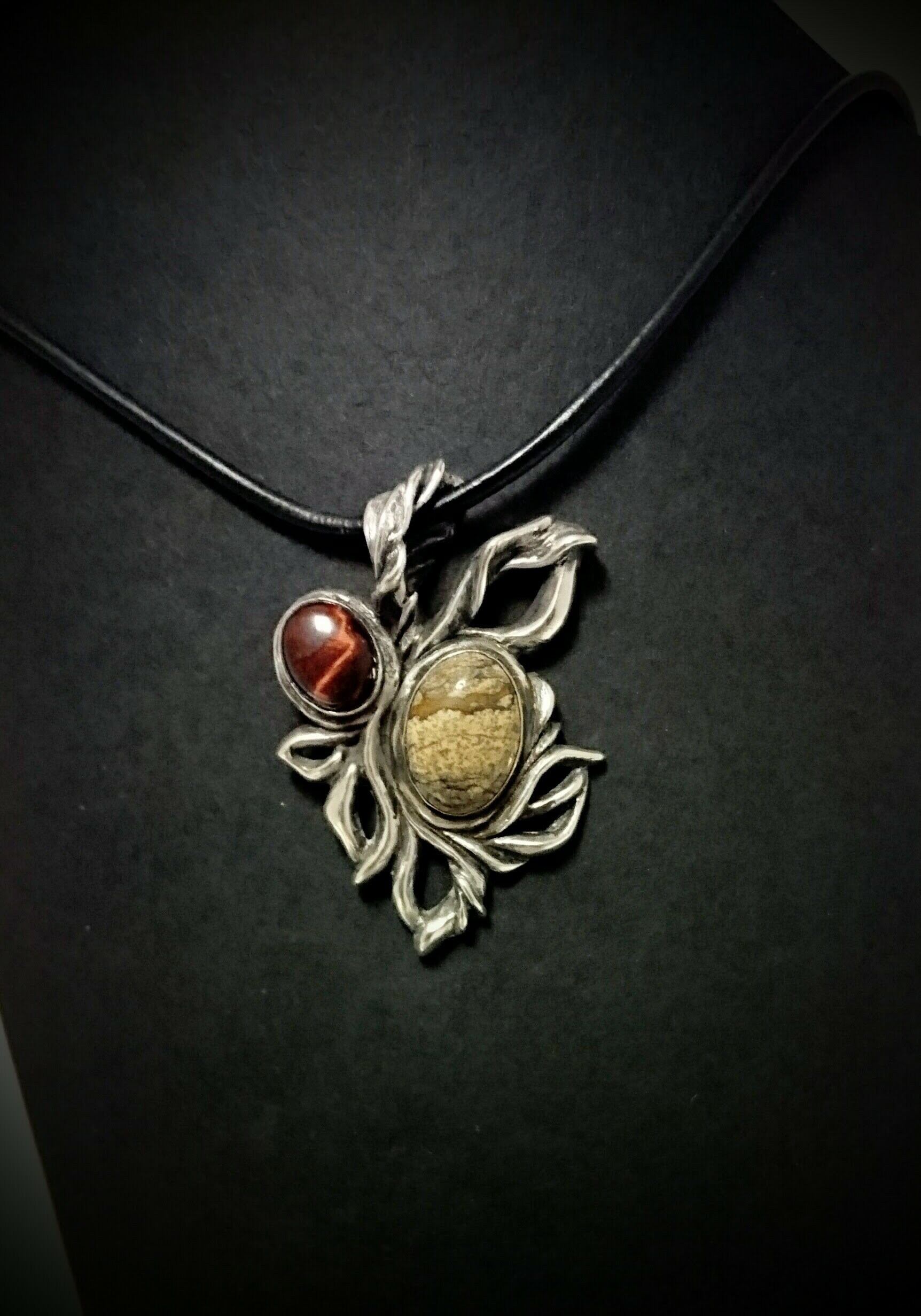 肌馴染みの良い色合いのピクチャージャスパーと深紅な色のレッドタイガーアイを入れた贅沢で欲張りなネックレス。